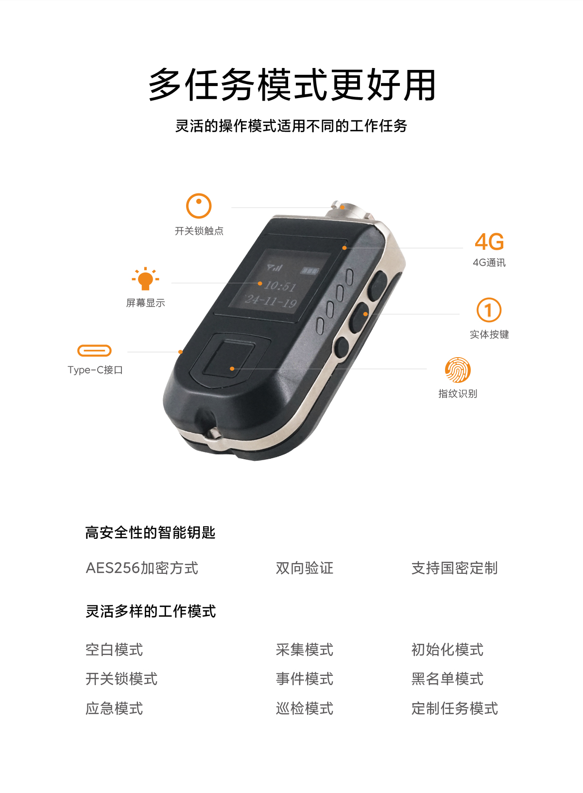 鑰匙具有唯一48位ID識別碼,AES256加密方式,接觸式雙向驗證,安全可靠!