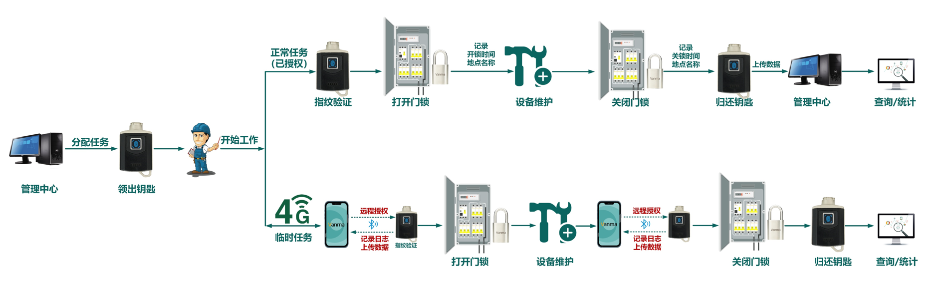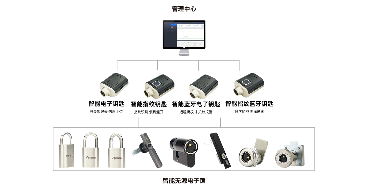 智能無源電子鎖具管理系統(tǒng)對鎖具進行了規(guī)范統(tǒng)一的管理,實現(xiàn)了鑰匙數(shù)量的減少以及對鑰匙領用與歸還的有效管理;通過開關鎖記錄功能,實現(xiàn)了整個鎖具管理過程的可視化,真正實現(xiàn)了鎖具的智能化和數(shù)據(jù)化管理;Vanma智能鎖控系統(tǒng)可提供多種開鎖授權方式,可以適合不同情況下的開鎖,對操作人員的便利性及其安全性都具有十分重要的意義。