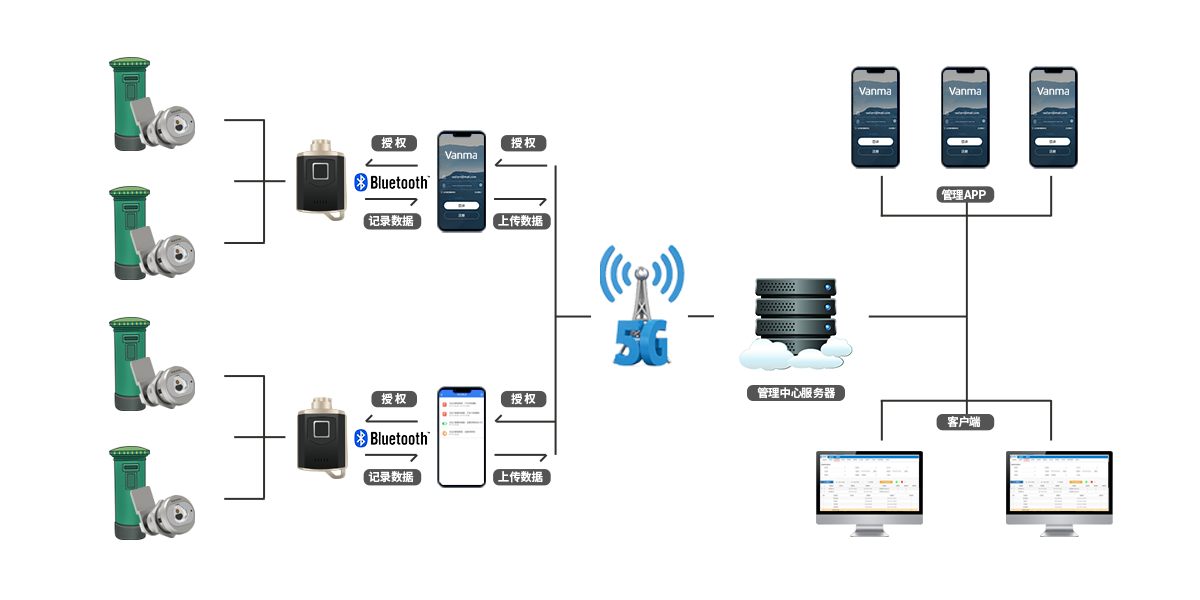 智能鑰匙柜:僅授權人員經人臉識別、指紋識別、密碼輸入、IC 卡刷卡等認證后可開啟。內部設計多個獨立鑰匙倉位,各倉位均內置數據傳輸觸點,當電子鑰匙歸位插入倉位,觸點自動連接,利用柜體內置 4G/5G 通信模塊,實時將電子鑰匙存儲數據上傳至系統管理軟件;同時,柜子自動為電子鑰匙充電,確保電量充足。