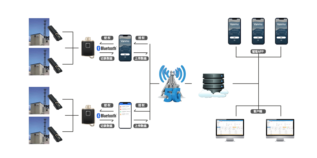 變電箱本系統針對鐵塔基站作業安全工作重點,應用智能APP+智能藍牙電子鑰匙的模式,配合高安全智能無源電子鎖,保障鐵塔基站通訊運行安全、提高作業效率,實現通訊安全信息化管理。