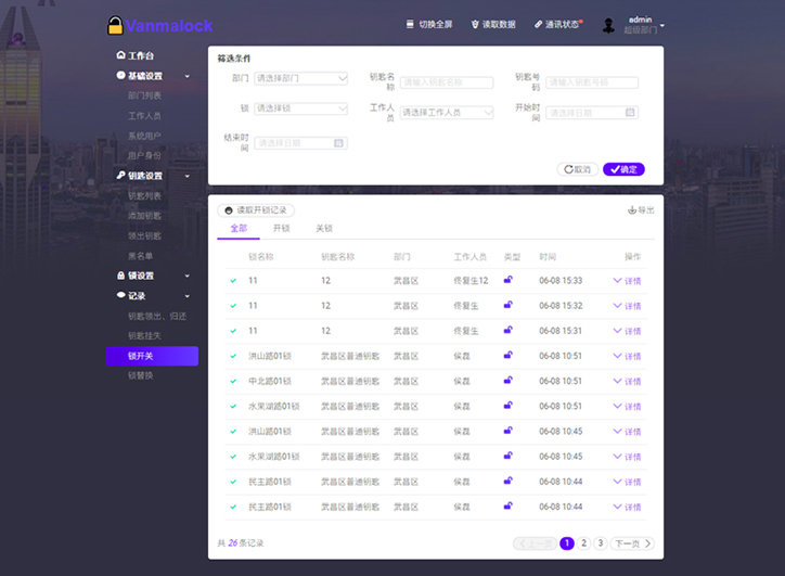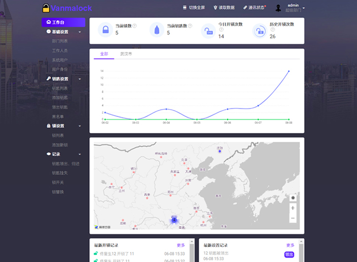 智能數據分析、數據可視化展示等為您提供多維度的鎖具管理服務。