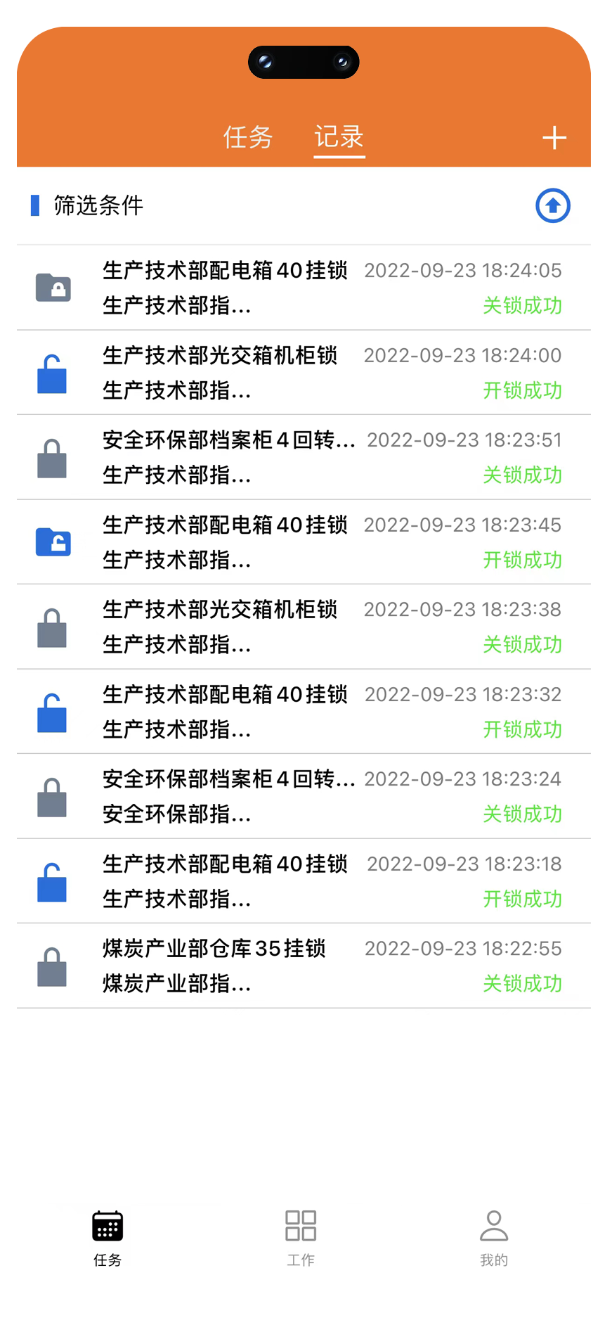 作業過程管理電子鑰匙記錄開關鎖時間,作業過程有據可依。