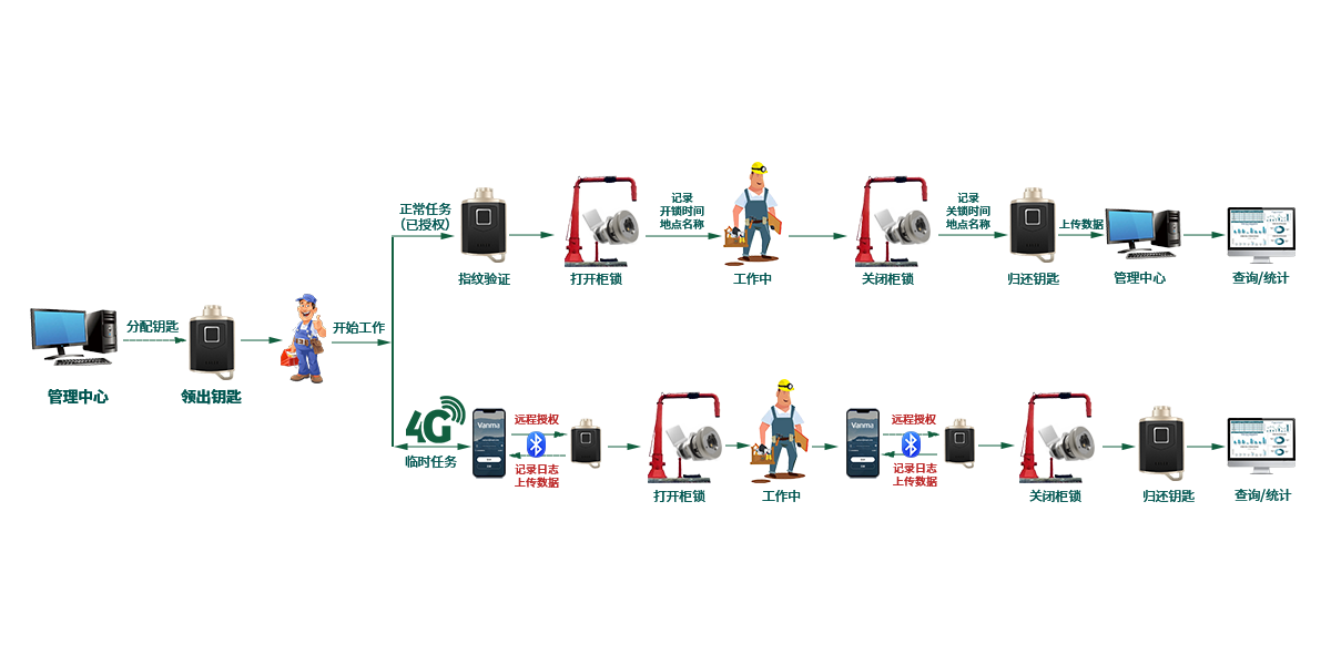 作業過程管理電子鑰匙記錄開關鎖時間,作業過程有據可依。