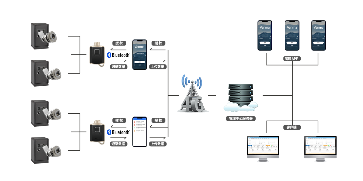 安全管理三級密碼權限+動態密鑰,防復制防技術開鎖,層層管控。
